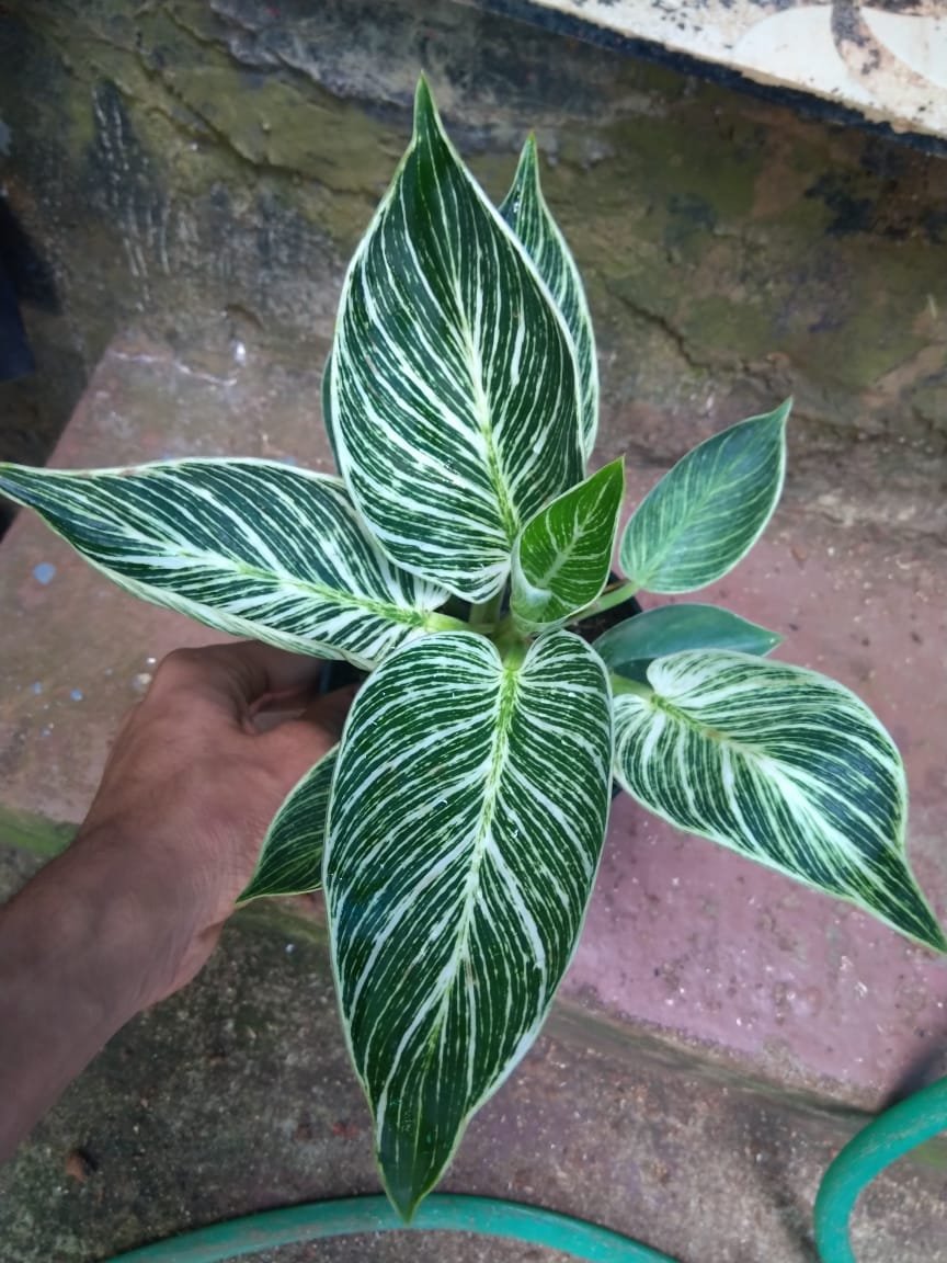 • Striking Variegated Foliage The Philodendron Birkin features large, glossy green leaves adorned with striking white or cream pinstripe variegation, making it a standout choice for indoor greenery.