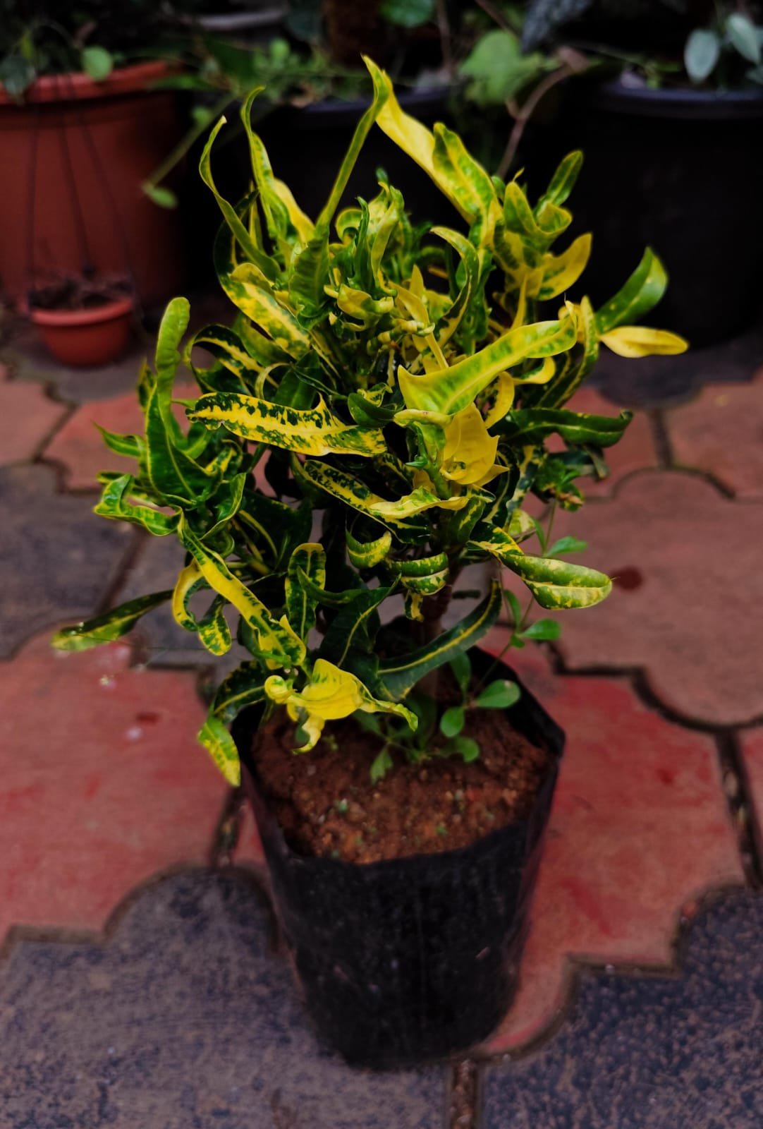 • Vibrant Foliage: Crotons are known for their stunning, colorful leaves, featuring shades of green, yellow, orange, red, and even purple, often with striking veins or spots, making them a favorite for decorative purposes.