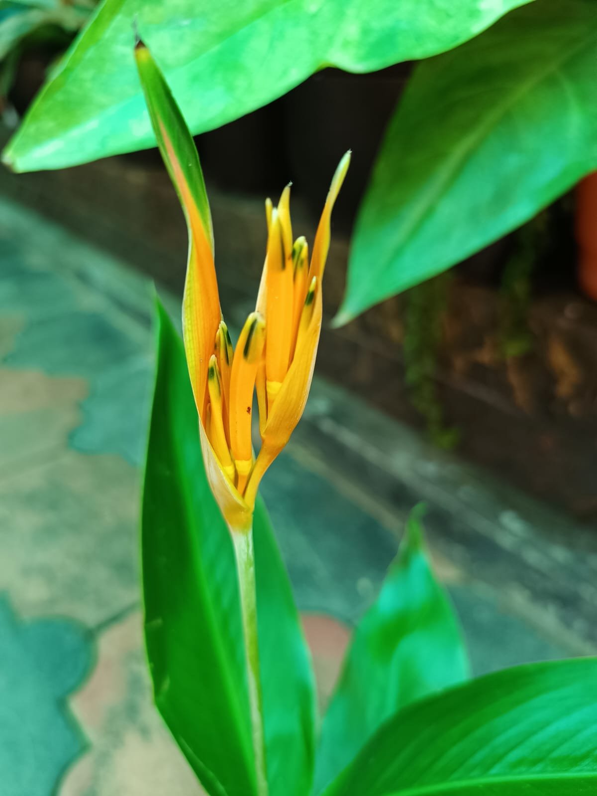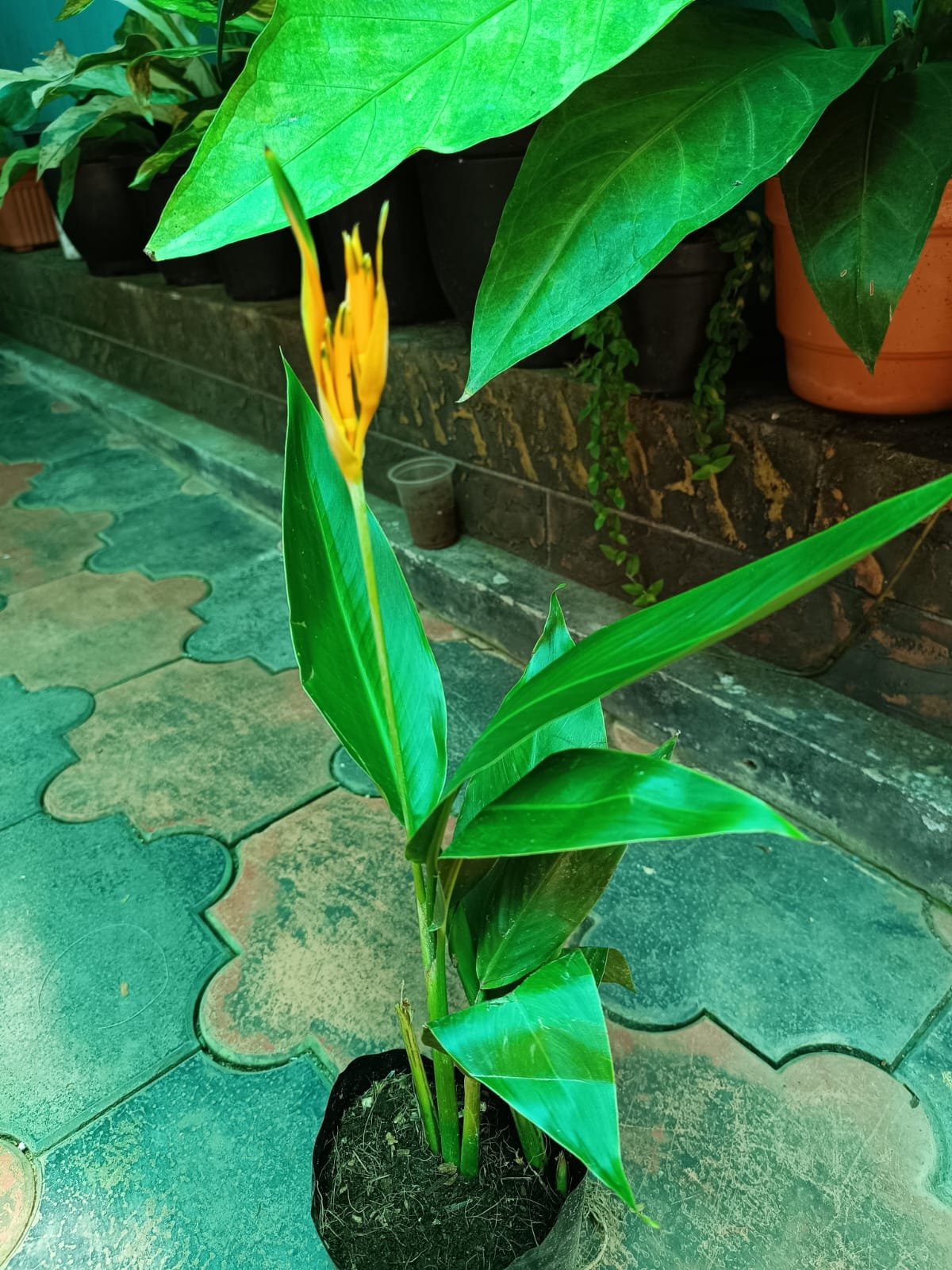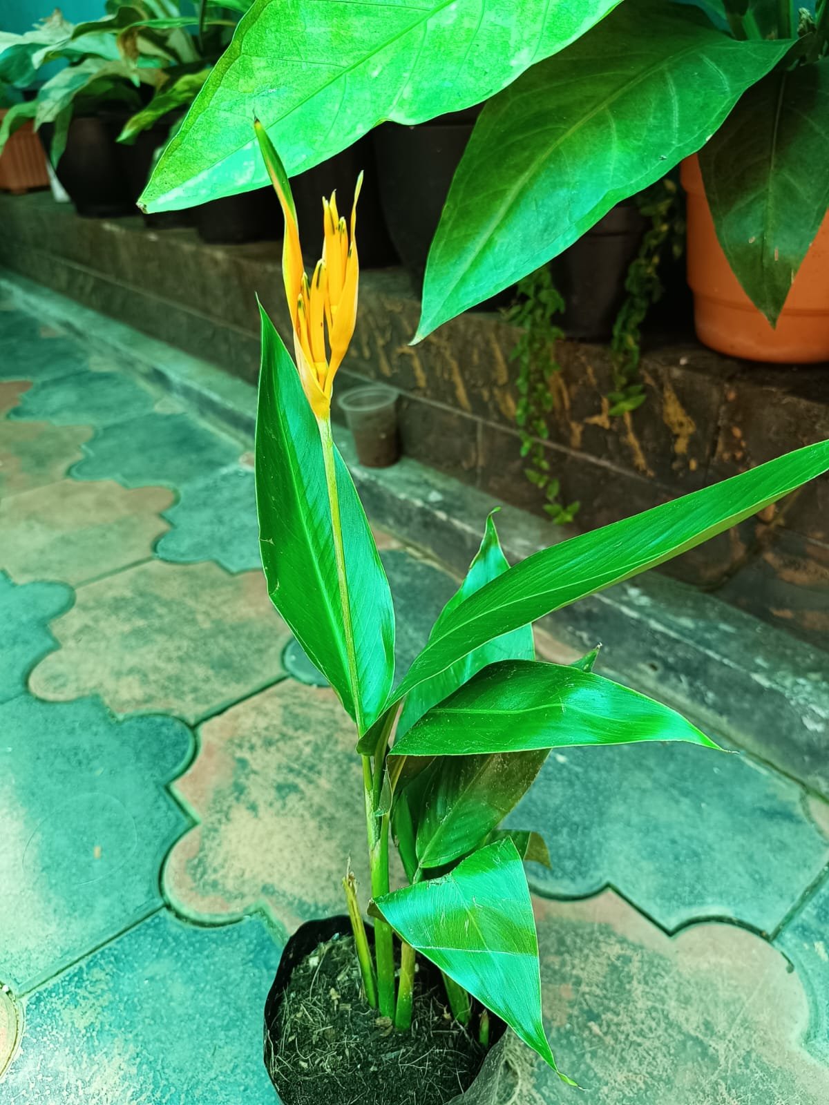 - Brilliant Golden-Yellow Flowers – This variety of Heliconia produces striking, upright, torch-like blooms in a rich golden-yellow hue with red accents, creating a vibrant tropical display.