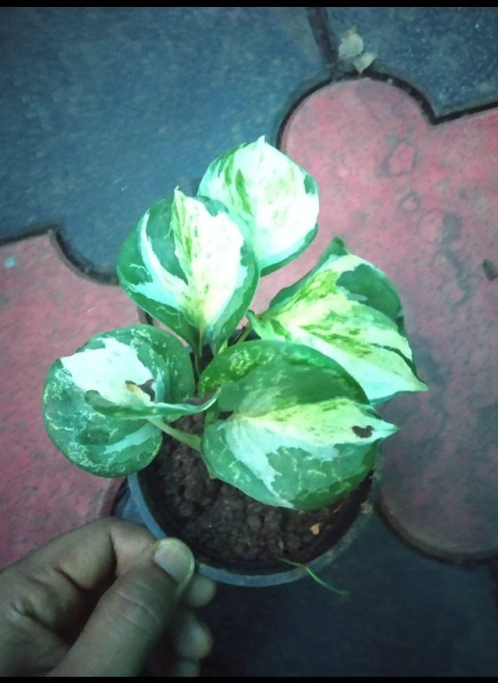 - Compact & Bushy Growth – When young, Manjula Pothos maintains a small, bushy appearance, making it ideal for tabletops, shelves, and small spaces. It trails and climbs over time but remains compact with regular pruning.