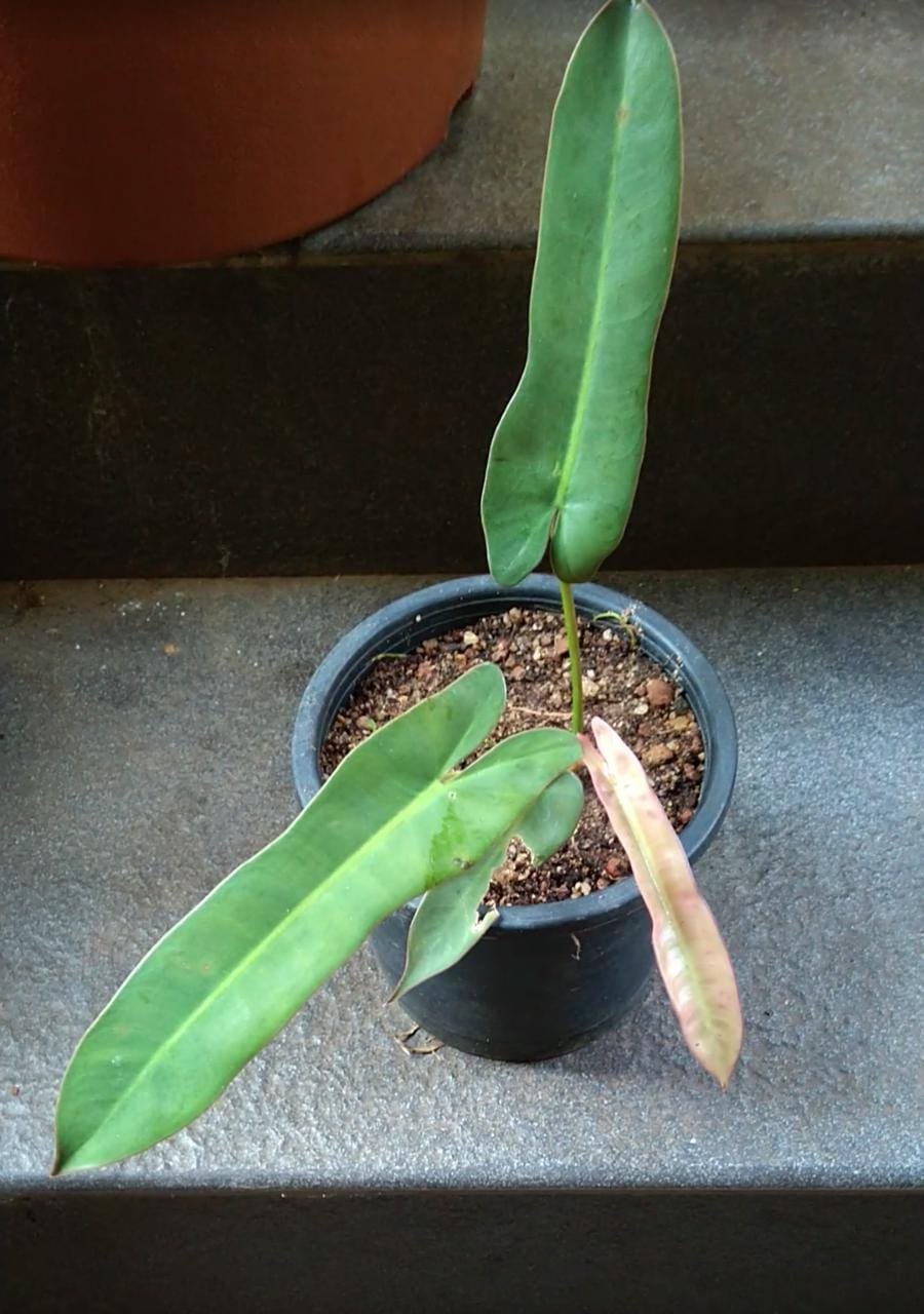 - Distinctive Narrow Foliage The Philodendron Atabapoense features long, narrow, lance-shaped leaves with a glossy deep green upper surface and a striking burgundy underside, creating a bold and elegant appearance.