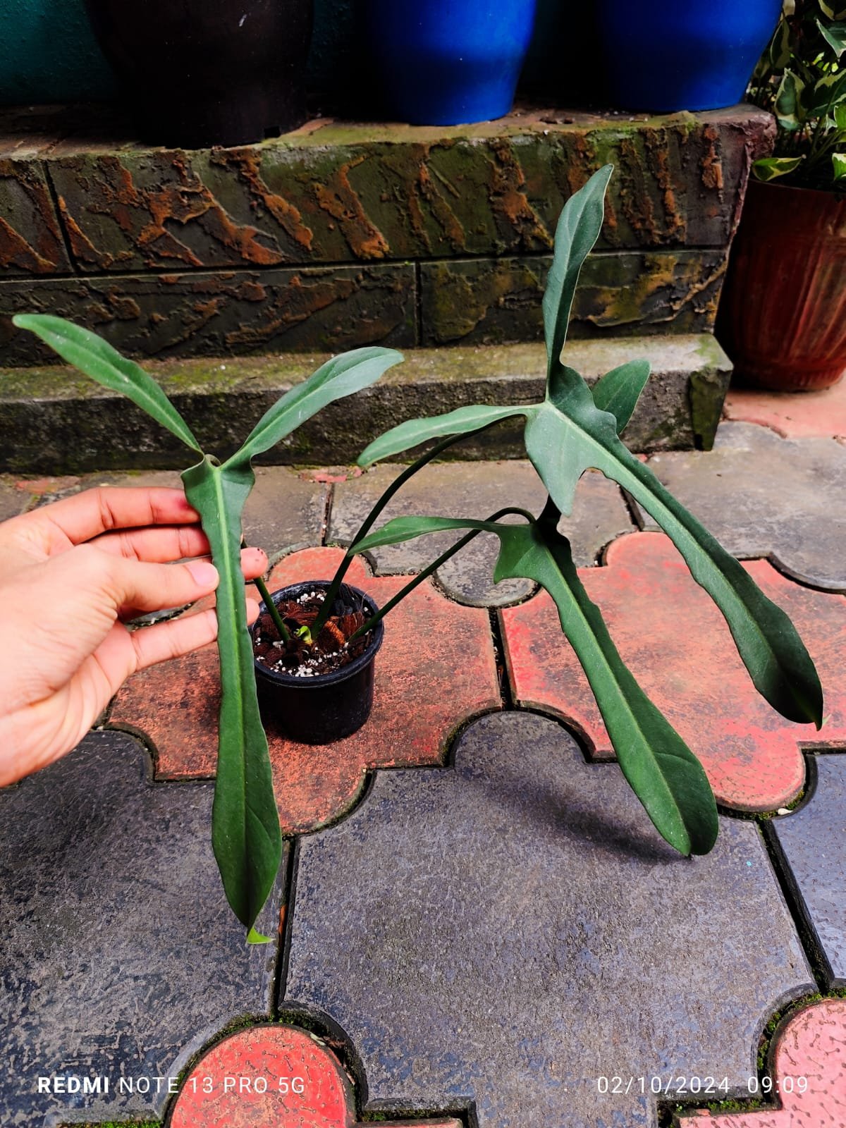 Unique Elongated Foliage – This philodendron features long, strap-shaped leaves with two short lobes near the base, giving it a distinctive, dragonfly-like appearance. Mature leaves can reach up to 3-4 feet in length.