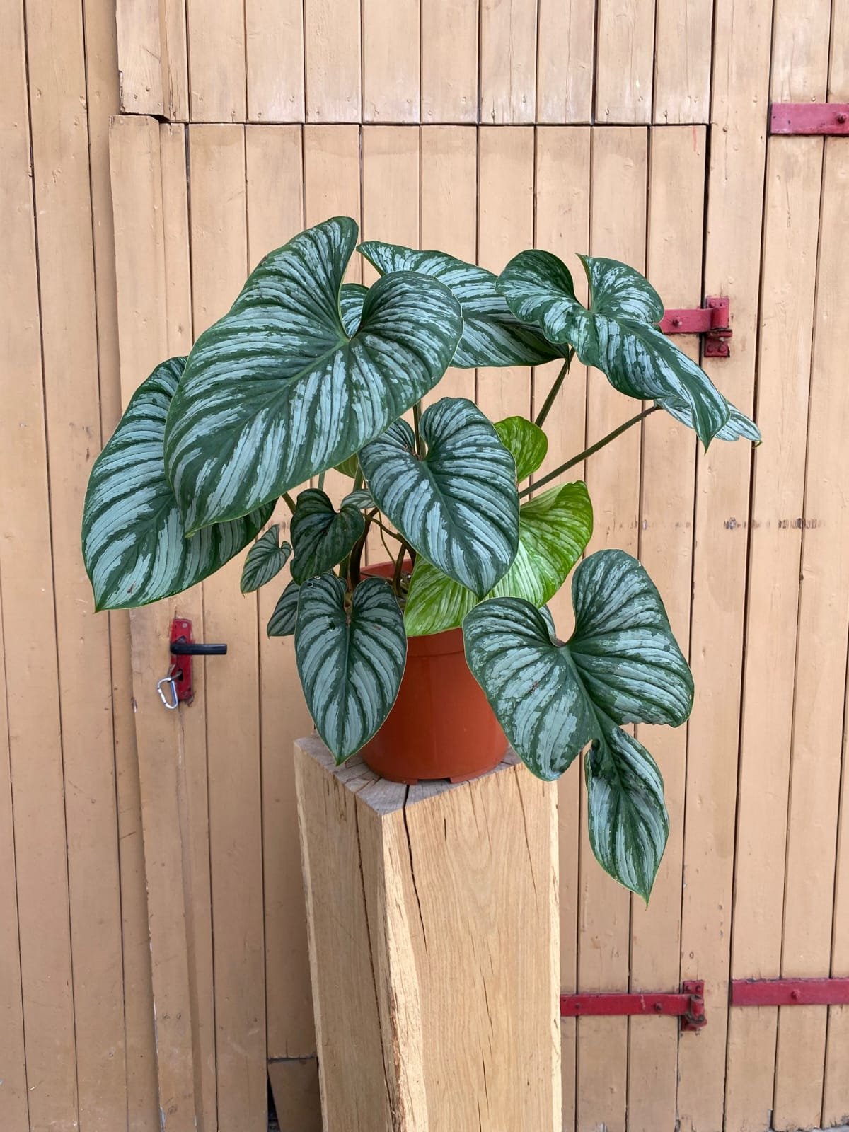 Large, Wavy-Edged Leaves – This plant has elongated, heart-shaped leaves with ruffled or wavy edges, creating a dramatic and elegant appearance.